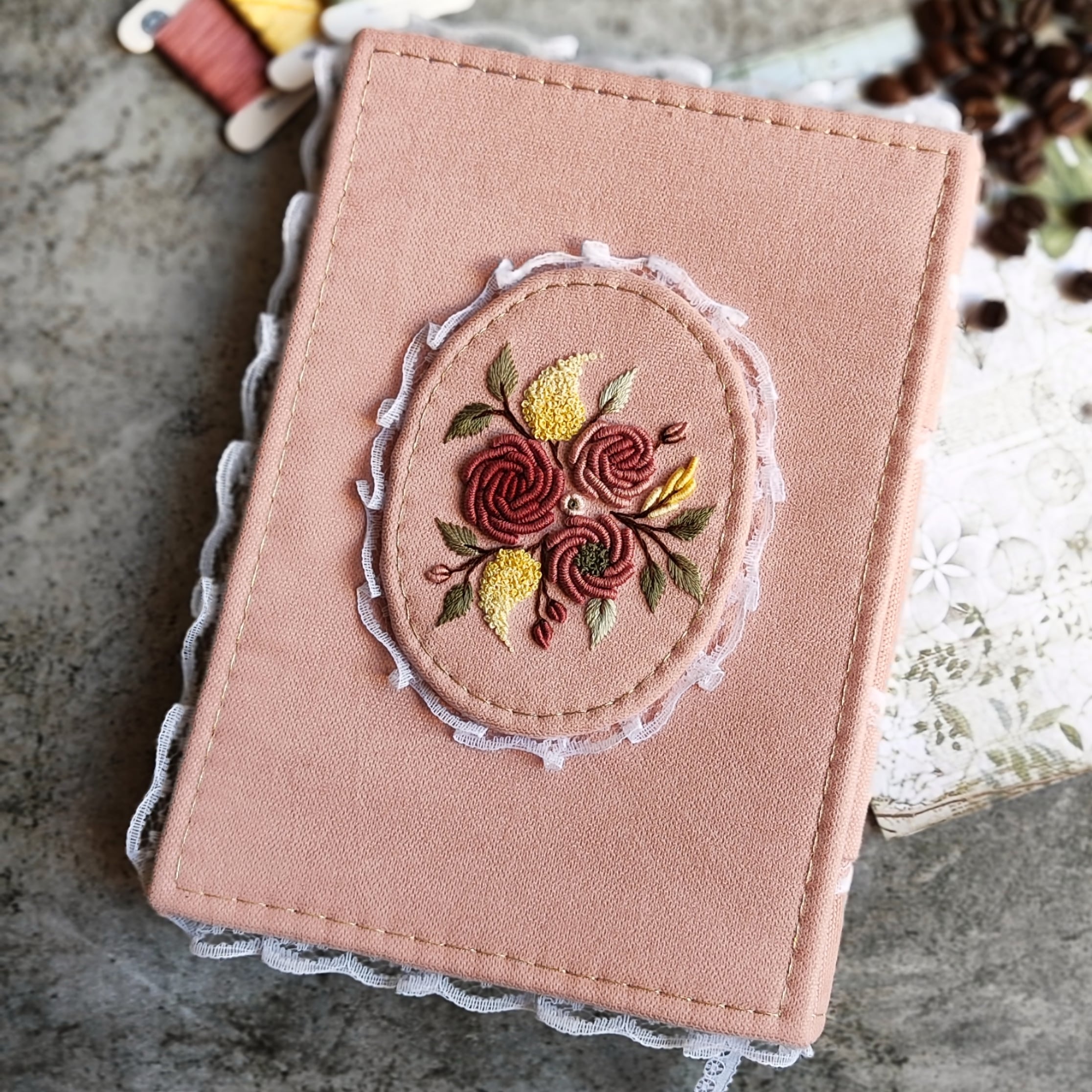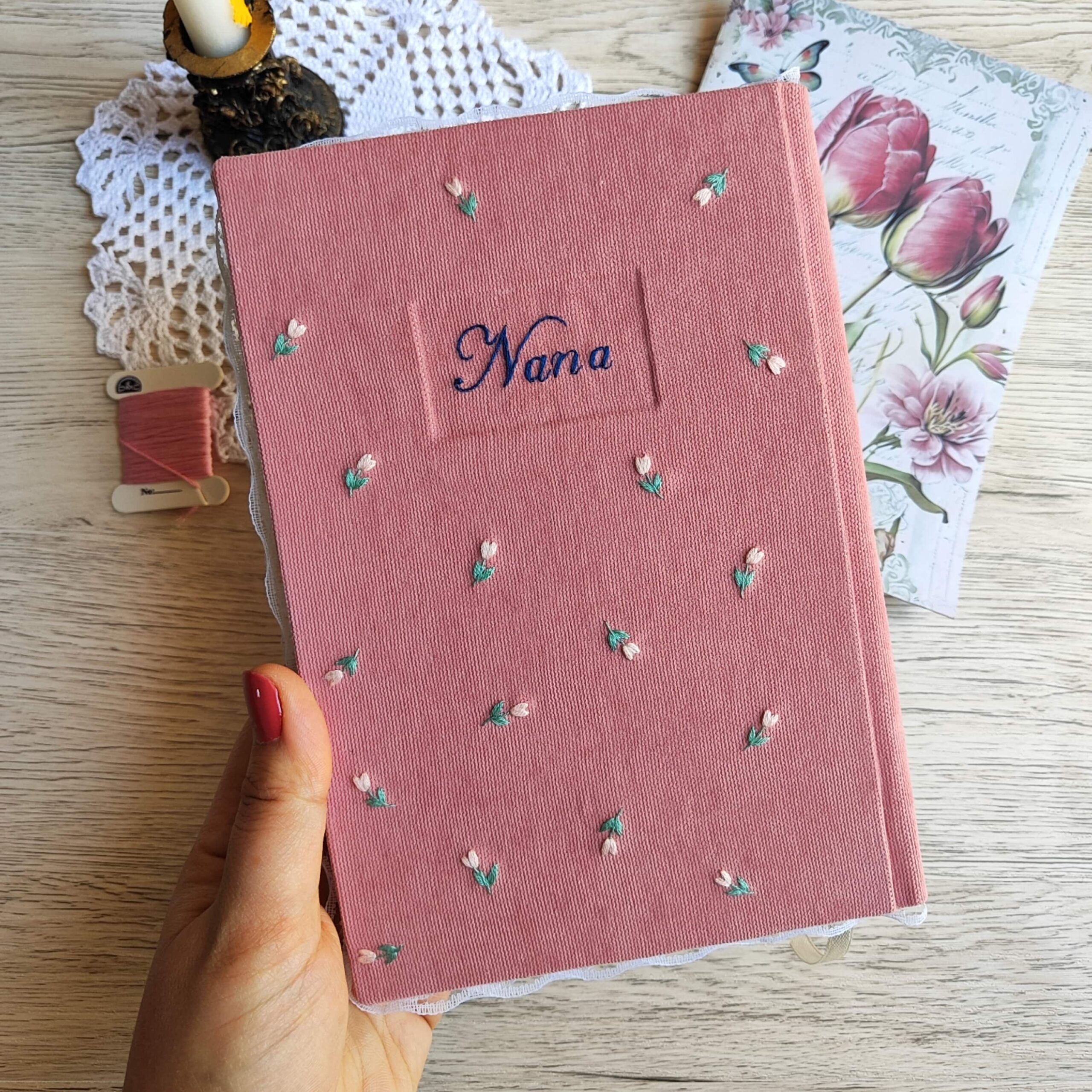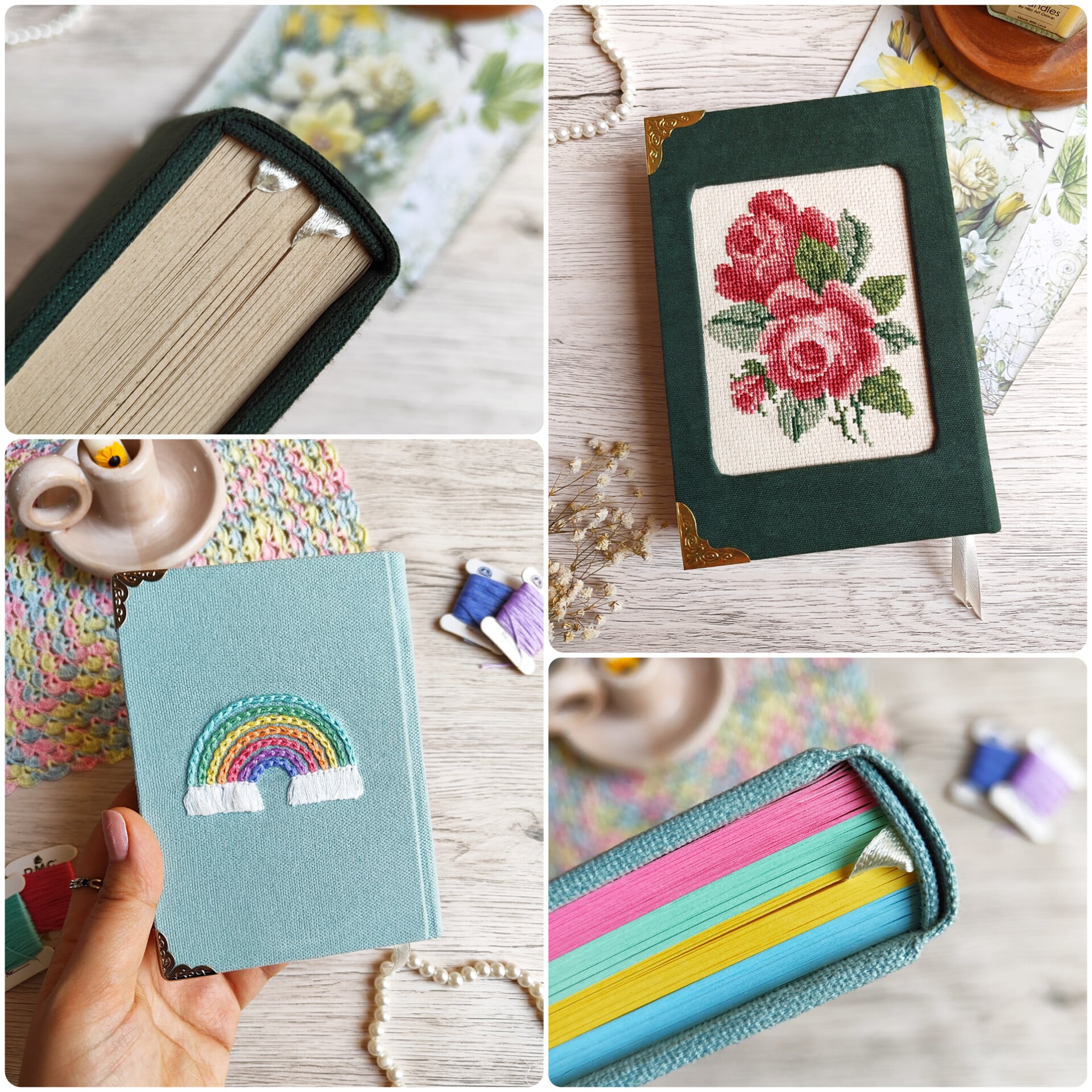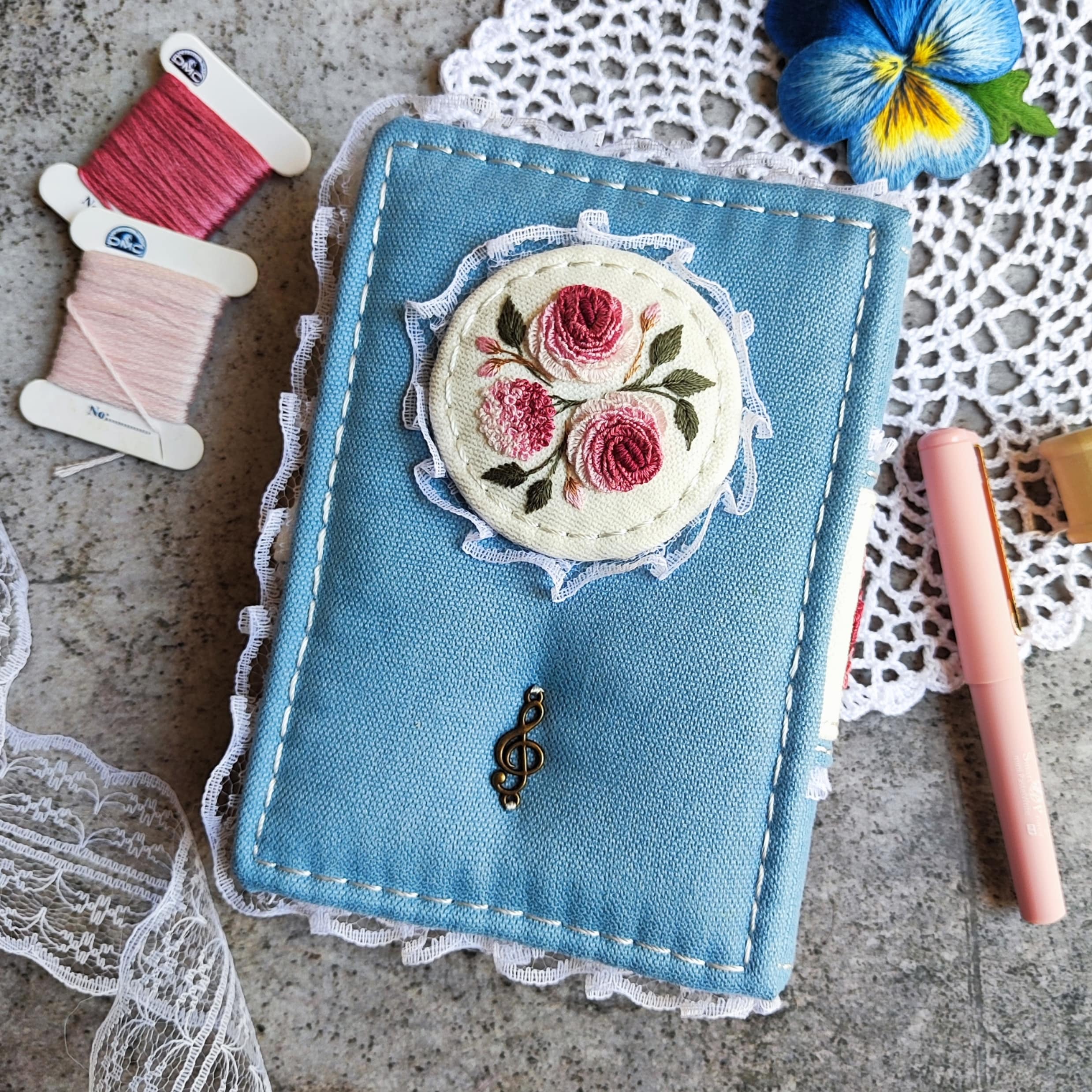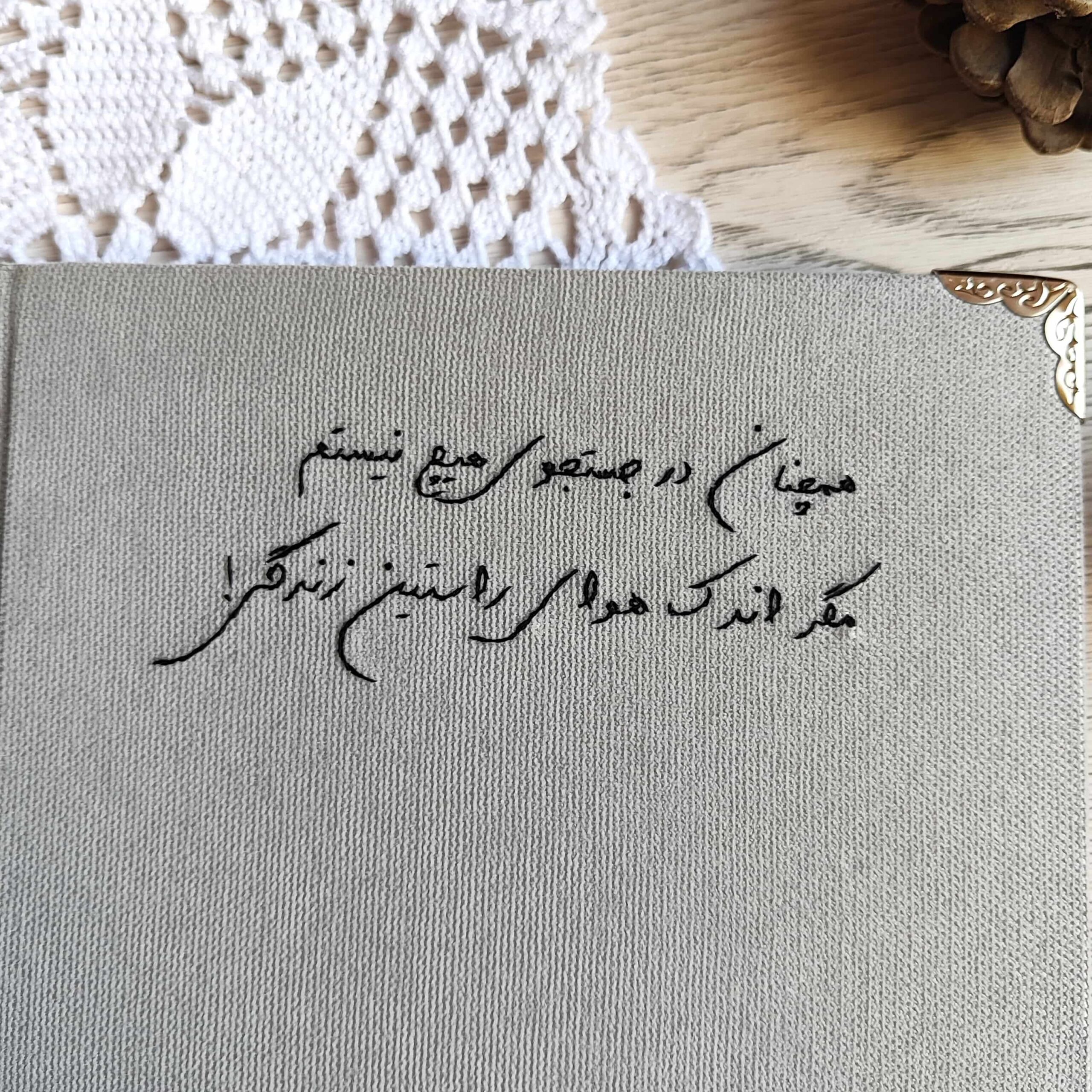 و از سال 401 بعد از کلی تمرین و آموزش، صحافی و جلد سازی رو یاد گرفتم و تبدیل شدم به تولید کننده دفتر با جلدهای گلدوزی.