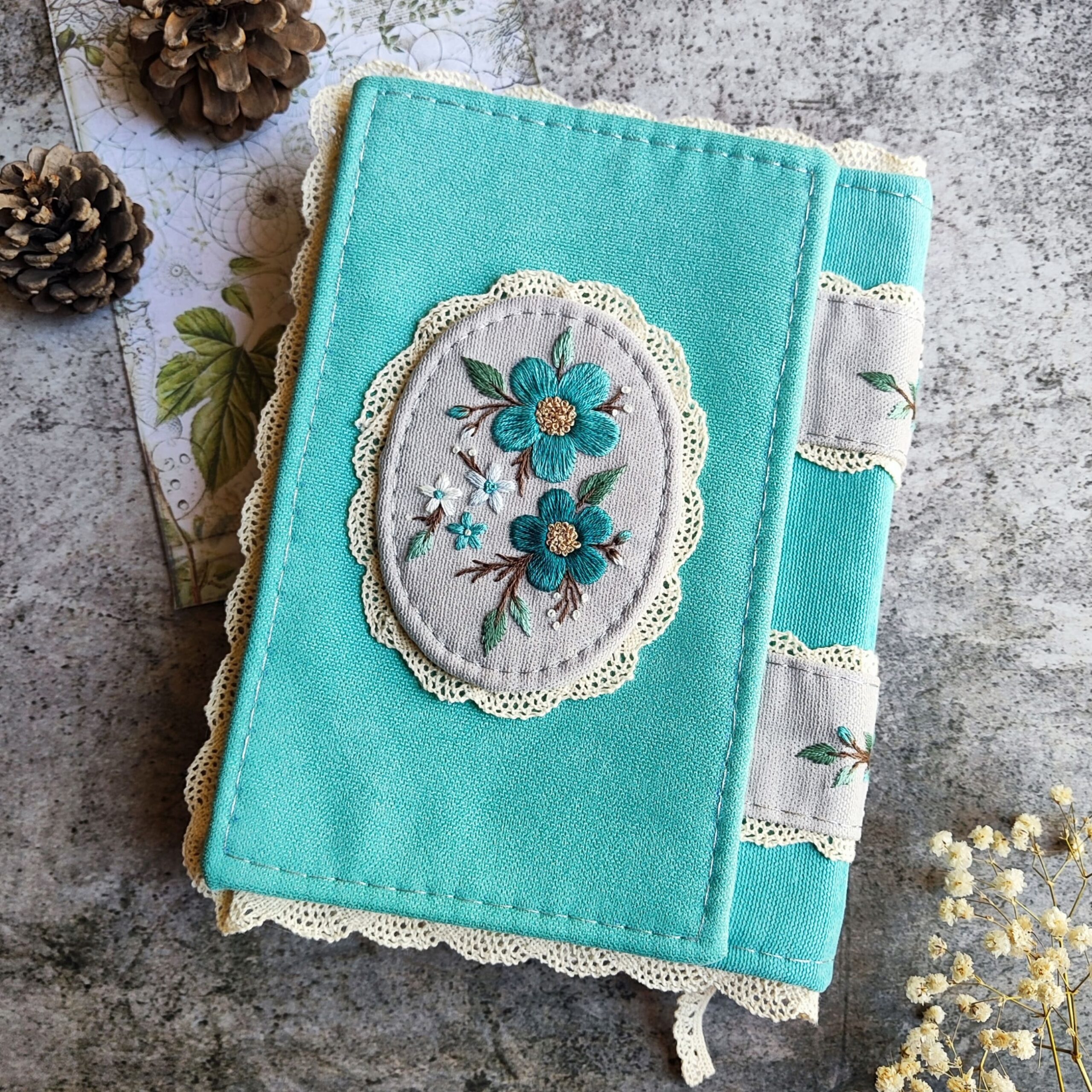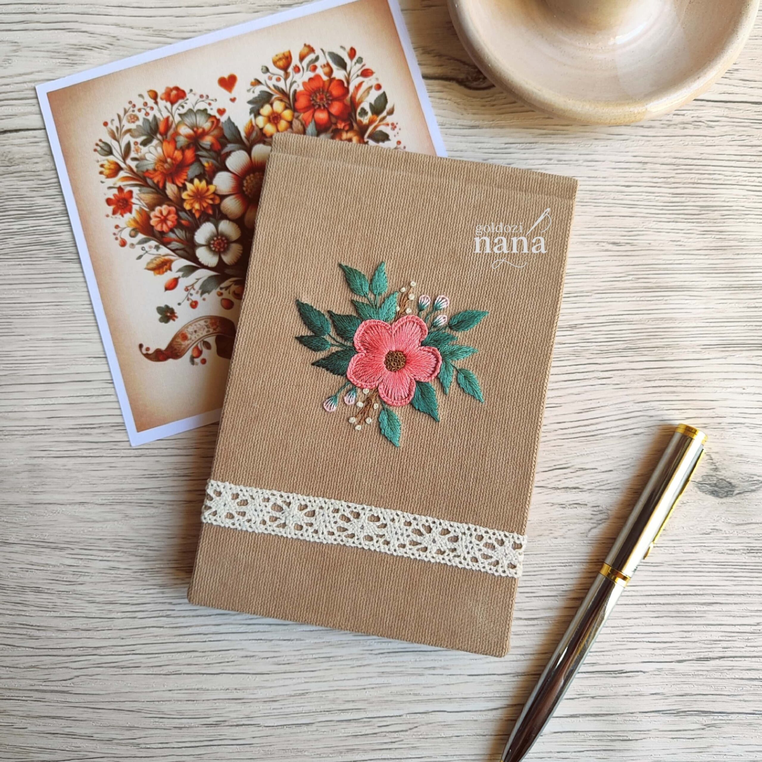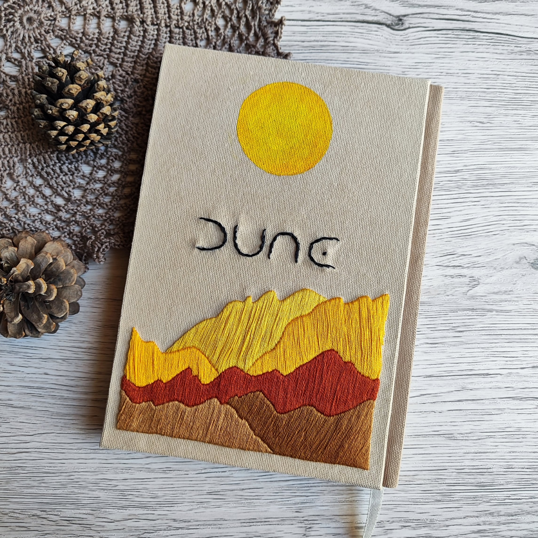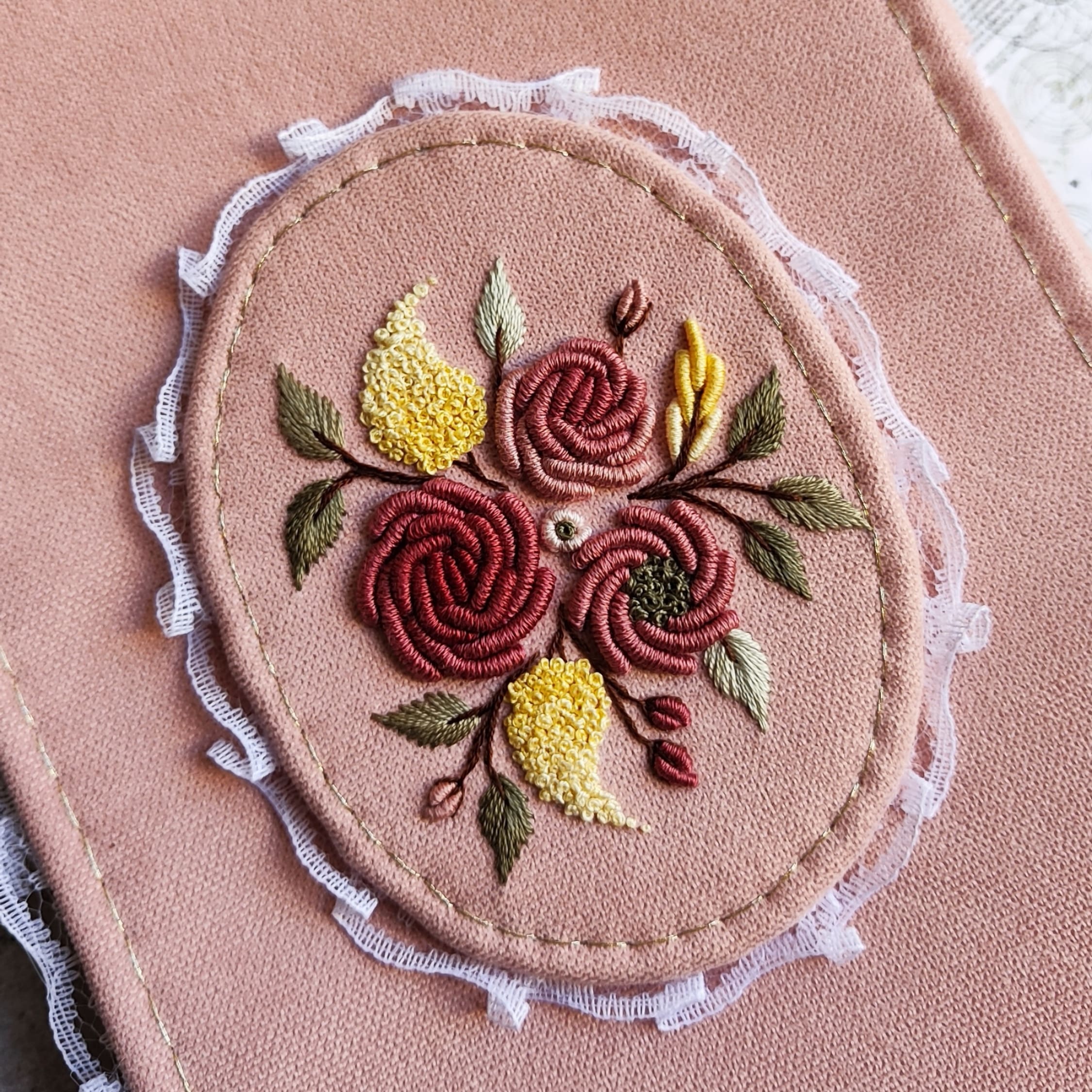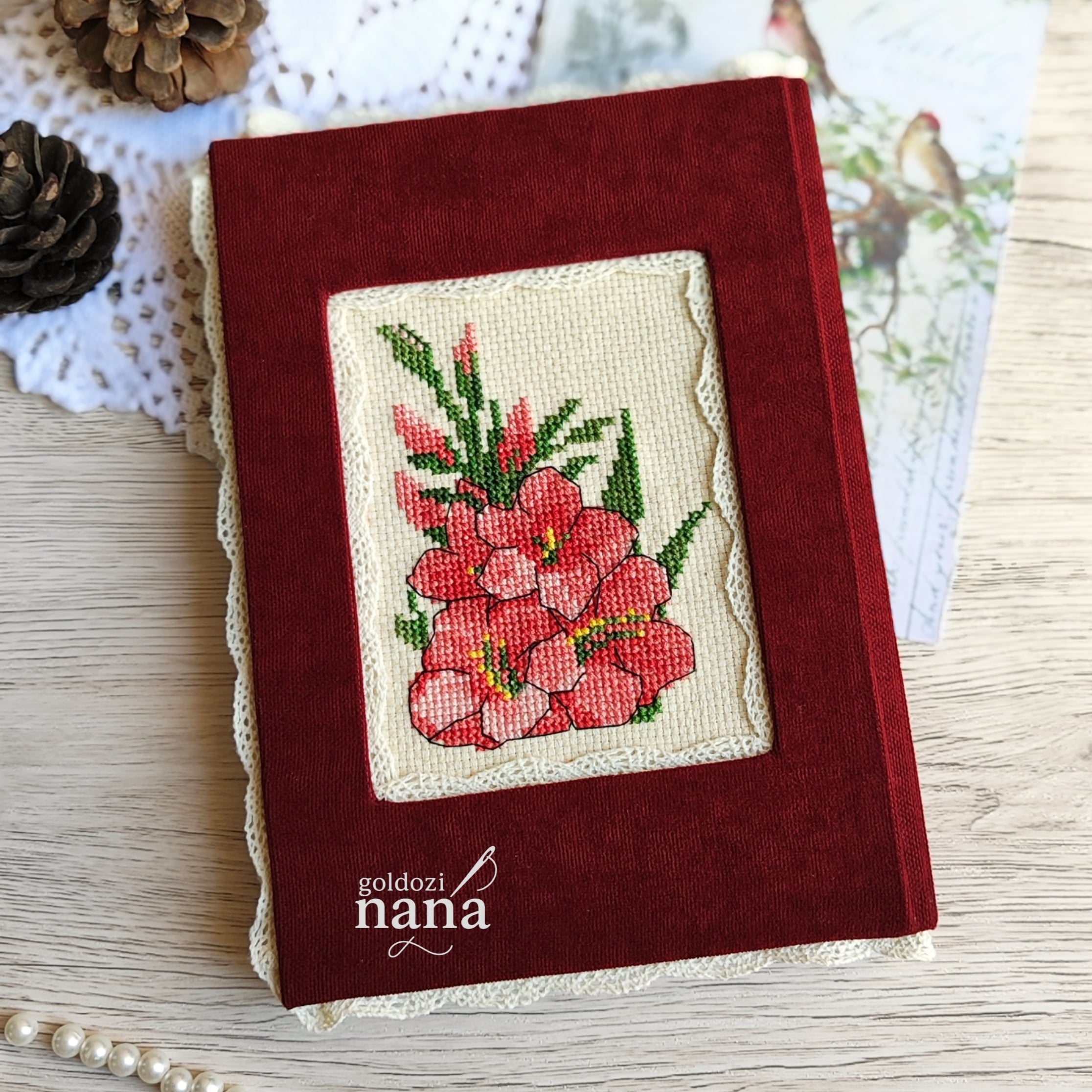 و از سال 401 بعد از کلی تمرین و آموزش، صحافی و جلد سازی رو یاد گرفتم و تبدیل شدم به تولید کننده دفتر با جلدهای گلدوزی.