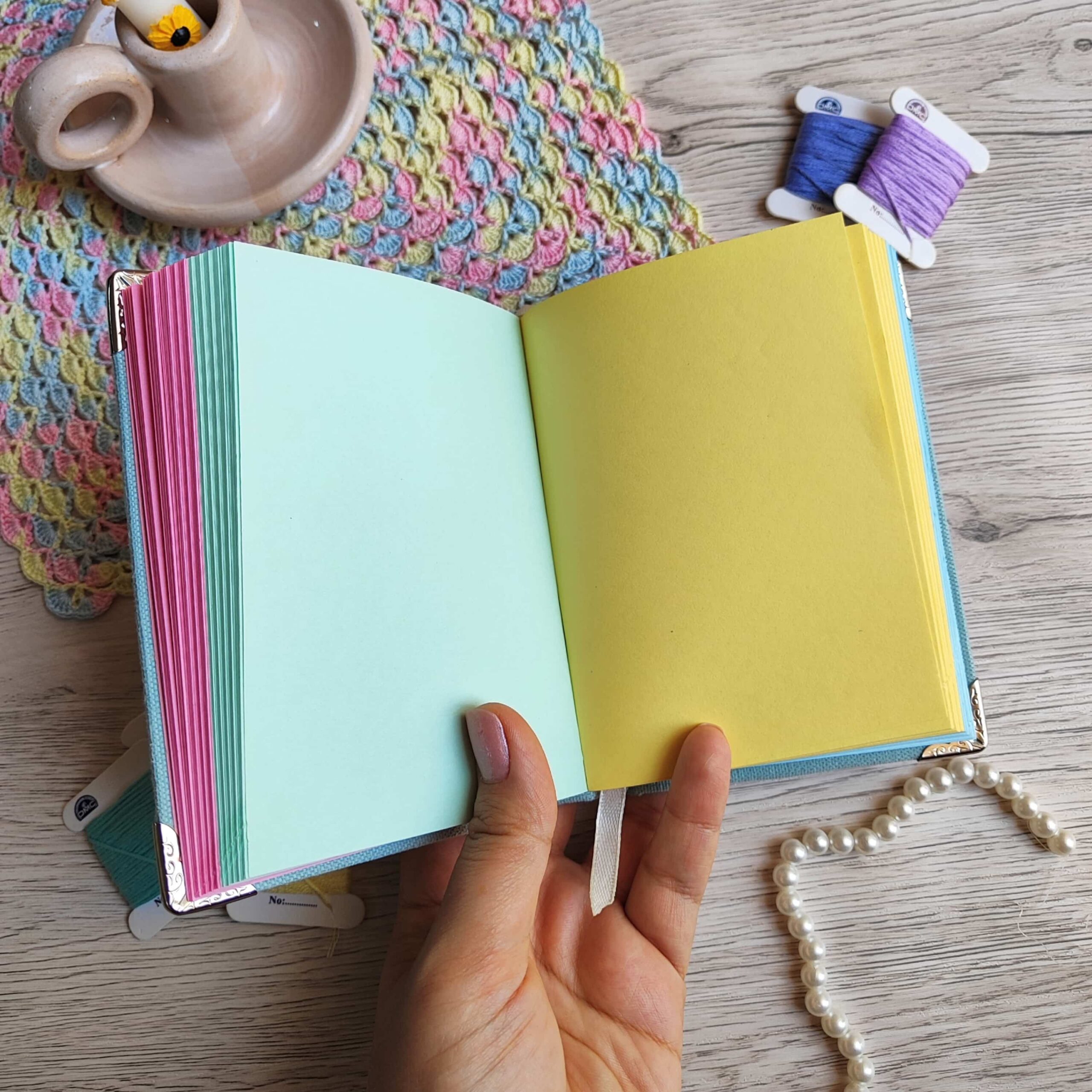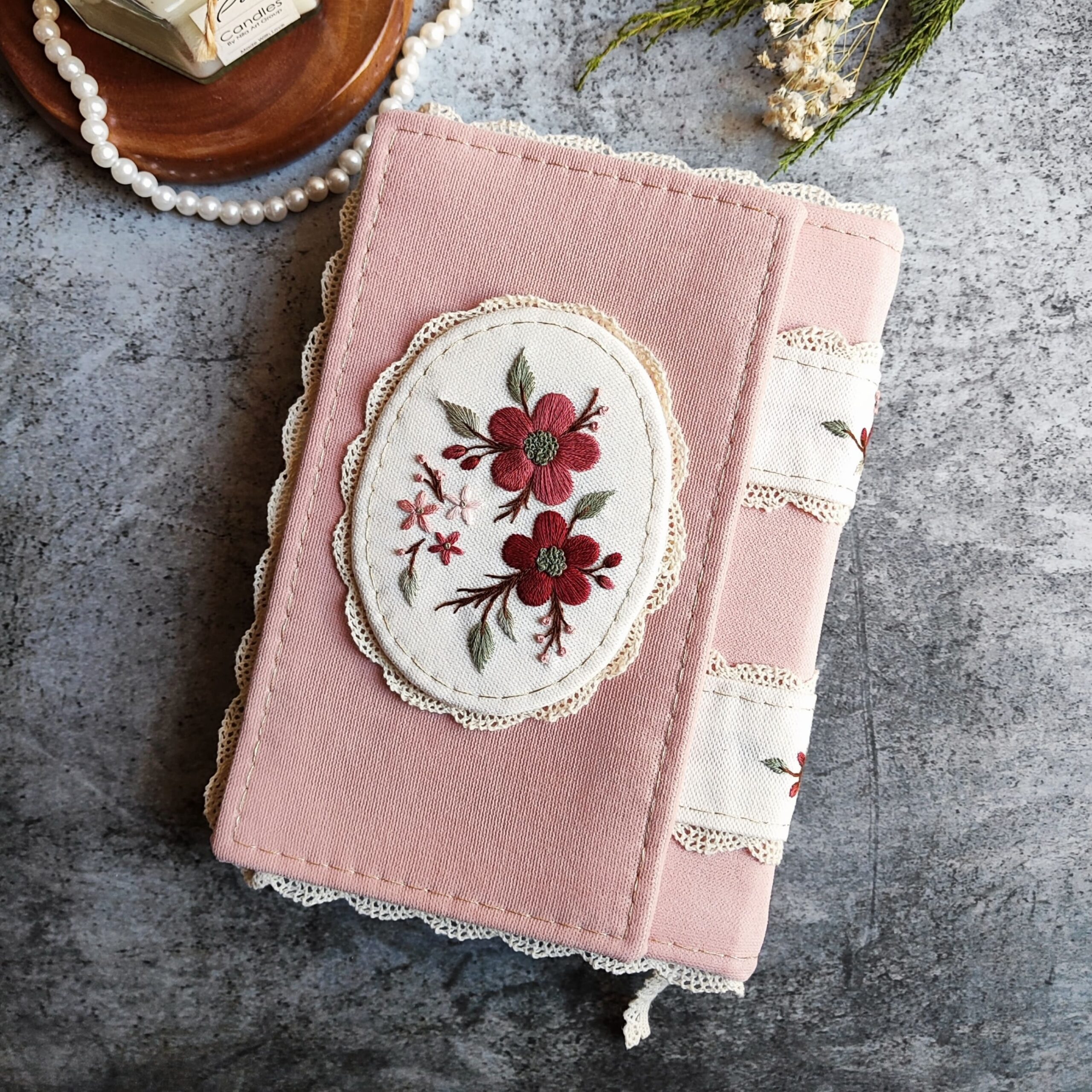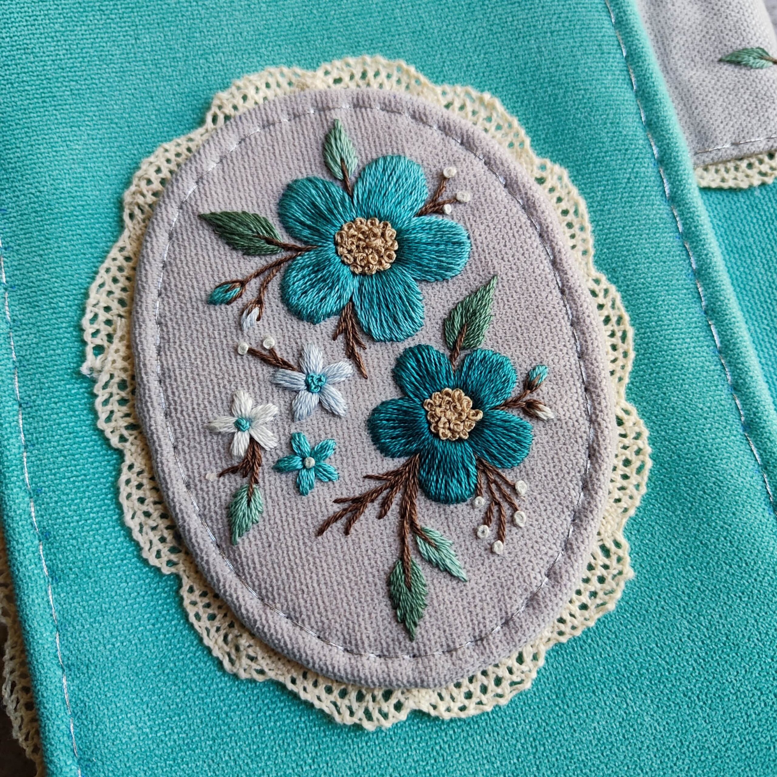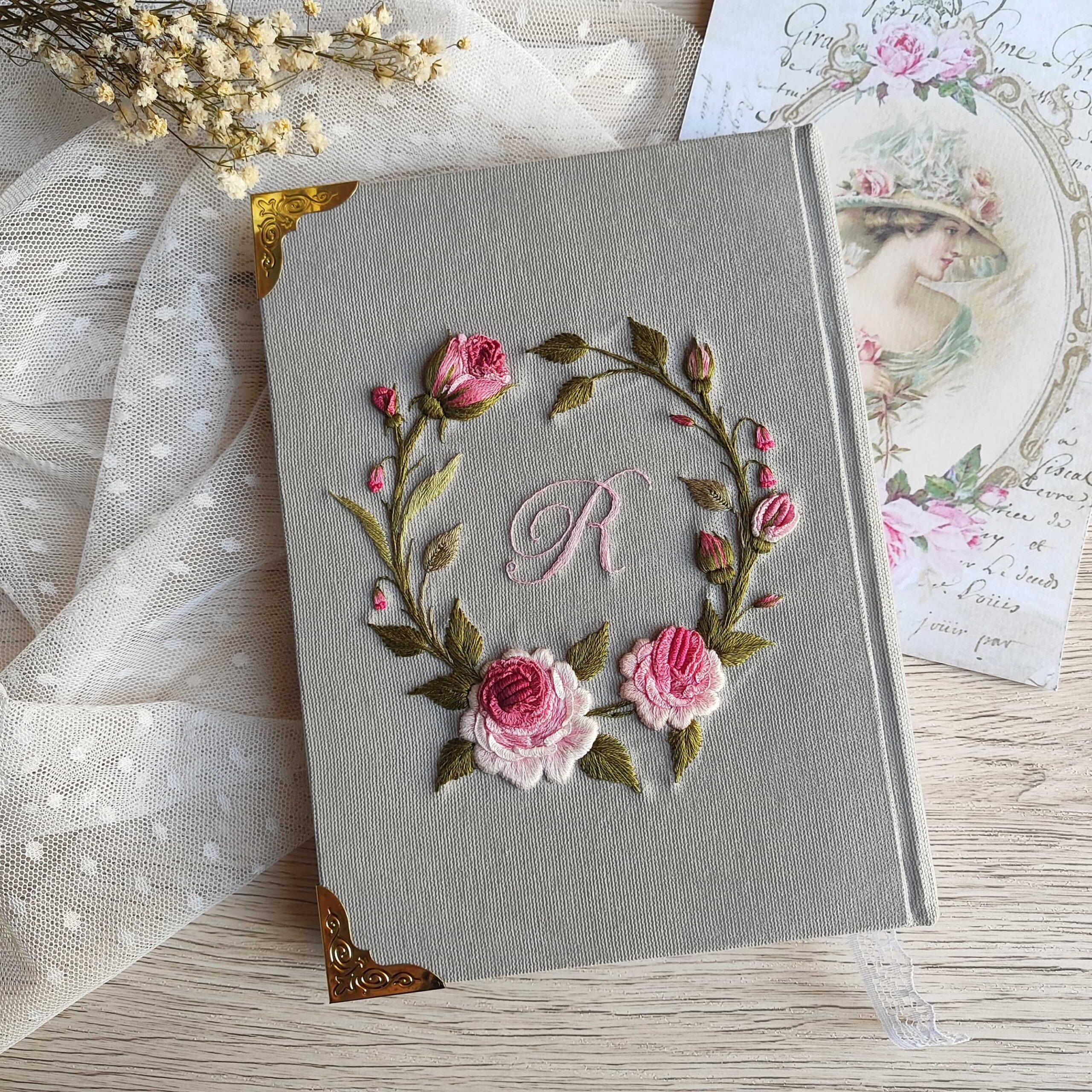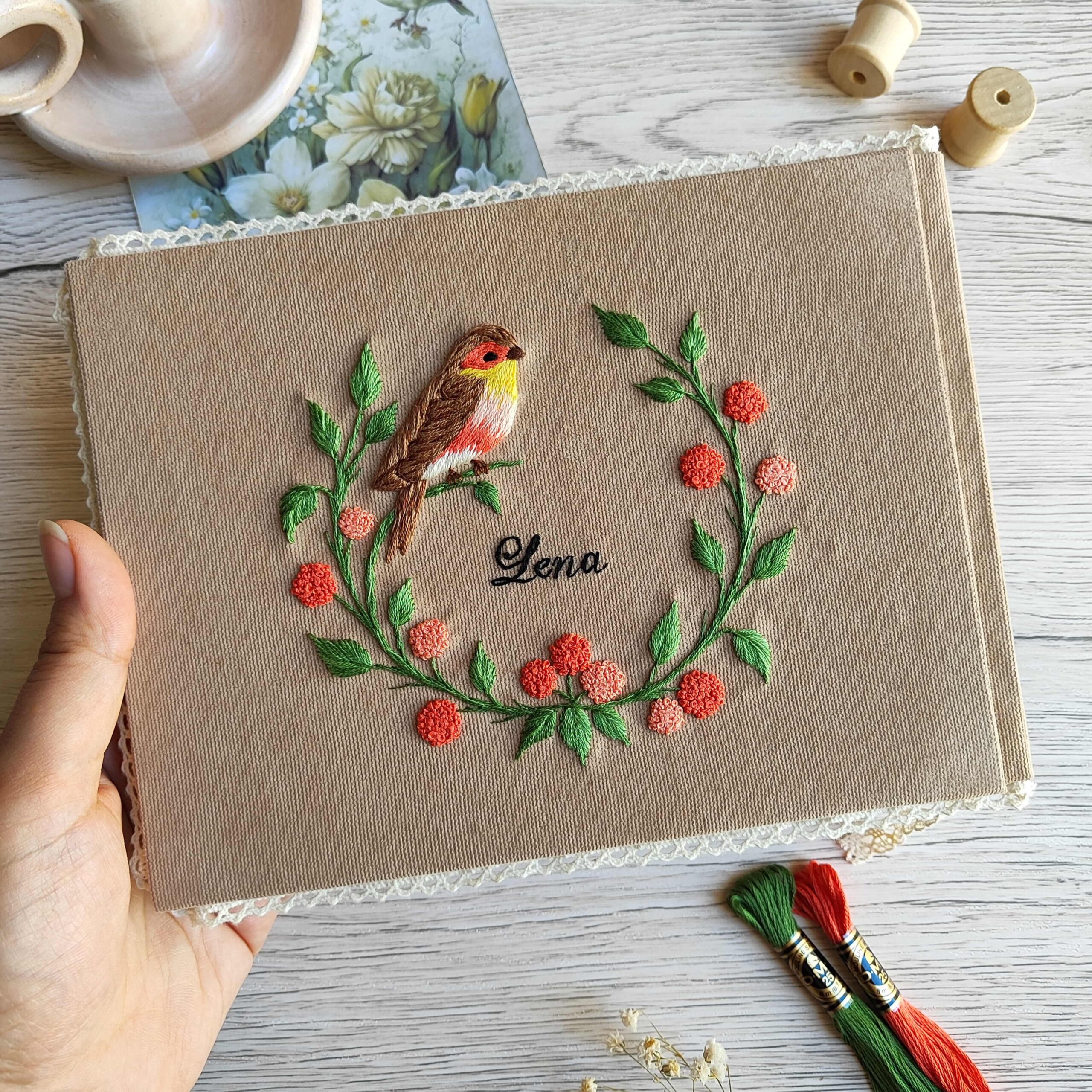 و از سال 401 بعد از کلی تمرین و آموزش، صحافی و جلد سازی رو یاد گرفتم و تبدیل شدم به تولید کننده دفتر با جلدهای گلدوزی.