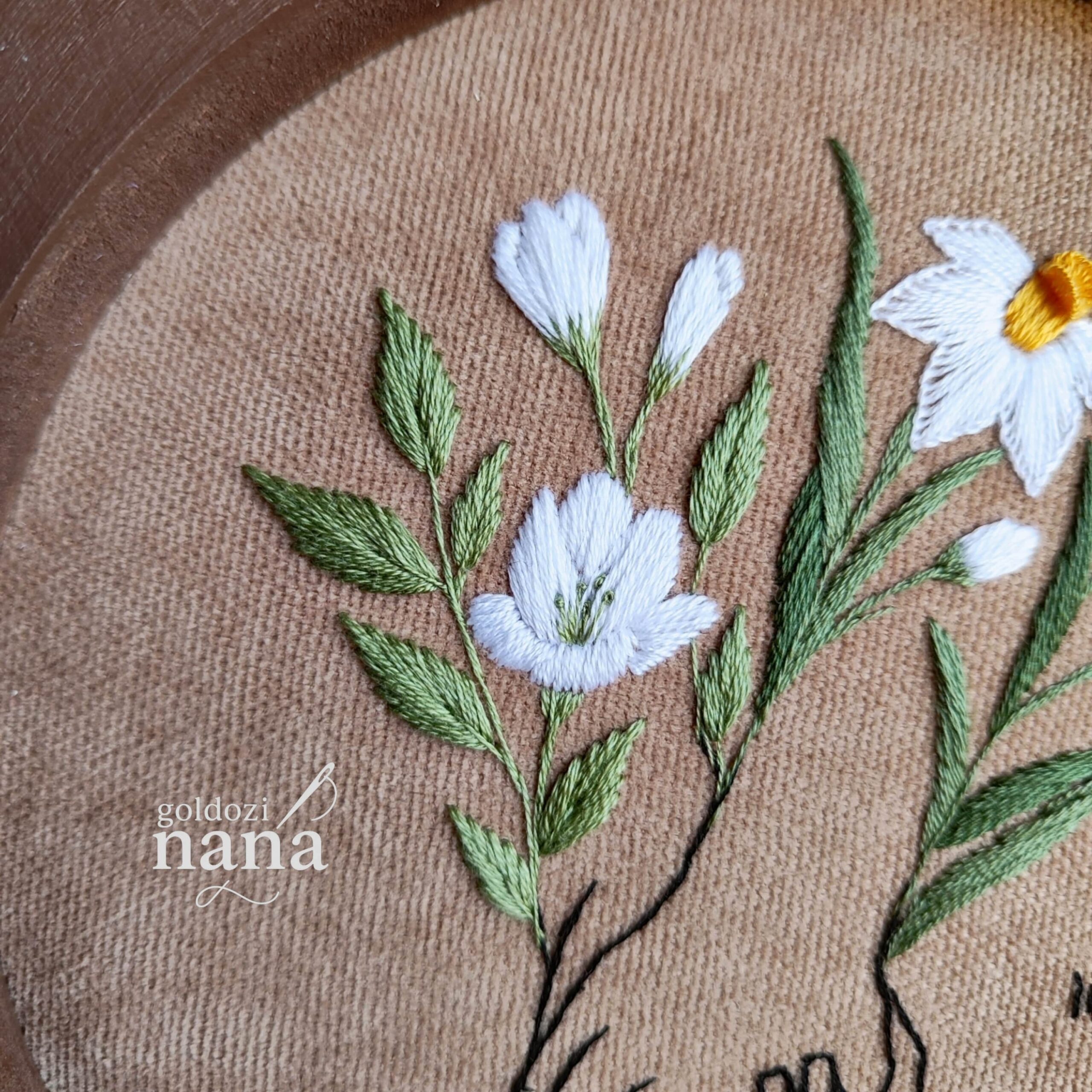دیوارکوب‌های گلدوزی نانا با ظرافت و عشق دوخته می‌شوند تا زیبایی را به دیوار خانه و دل شما بیاورند. هر طرح، حاصل ساعت‌ها کار دست و الهام از گل‌ها و نقش‌های هنری است.